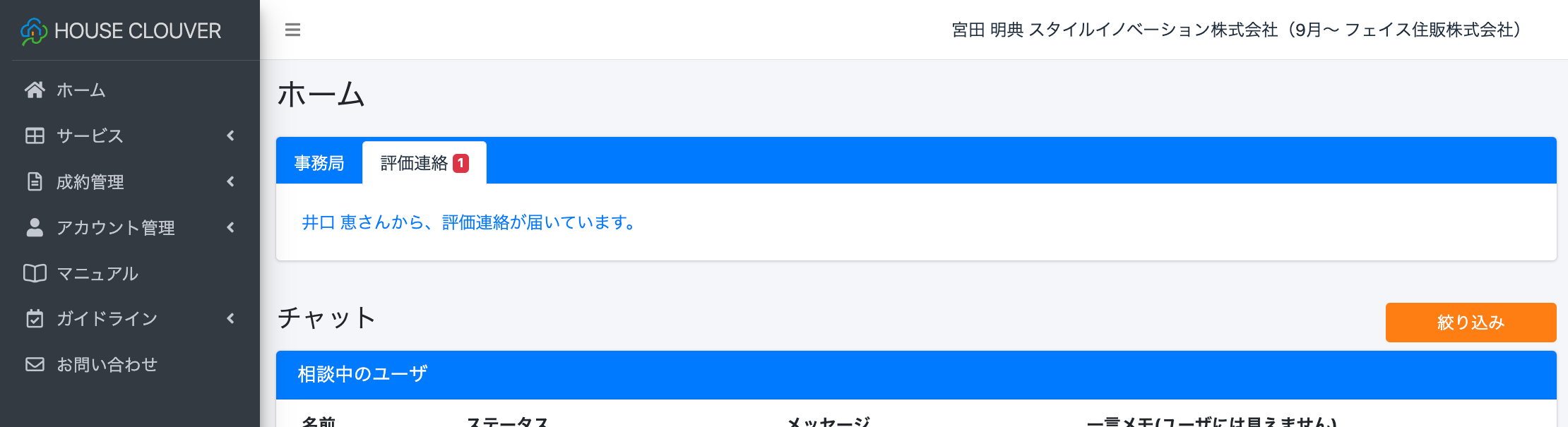 ユーザーの評価が終わると、ホーム画面上の「評価連絡」タブに赤い数字が付きます。