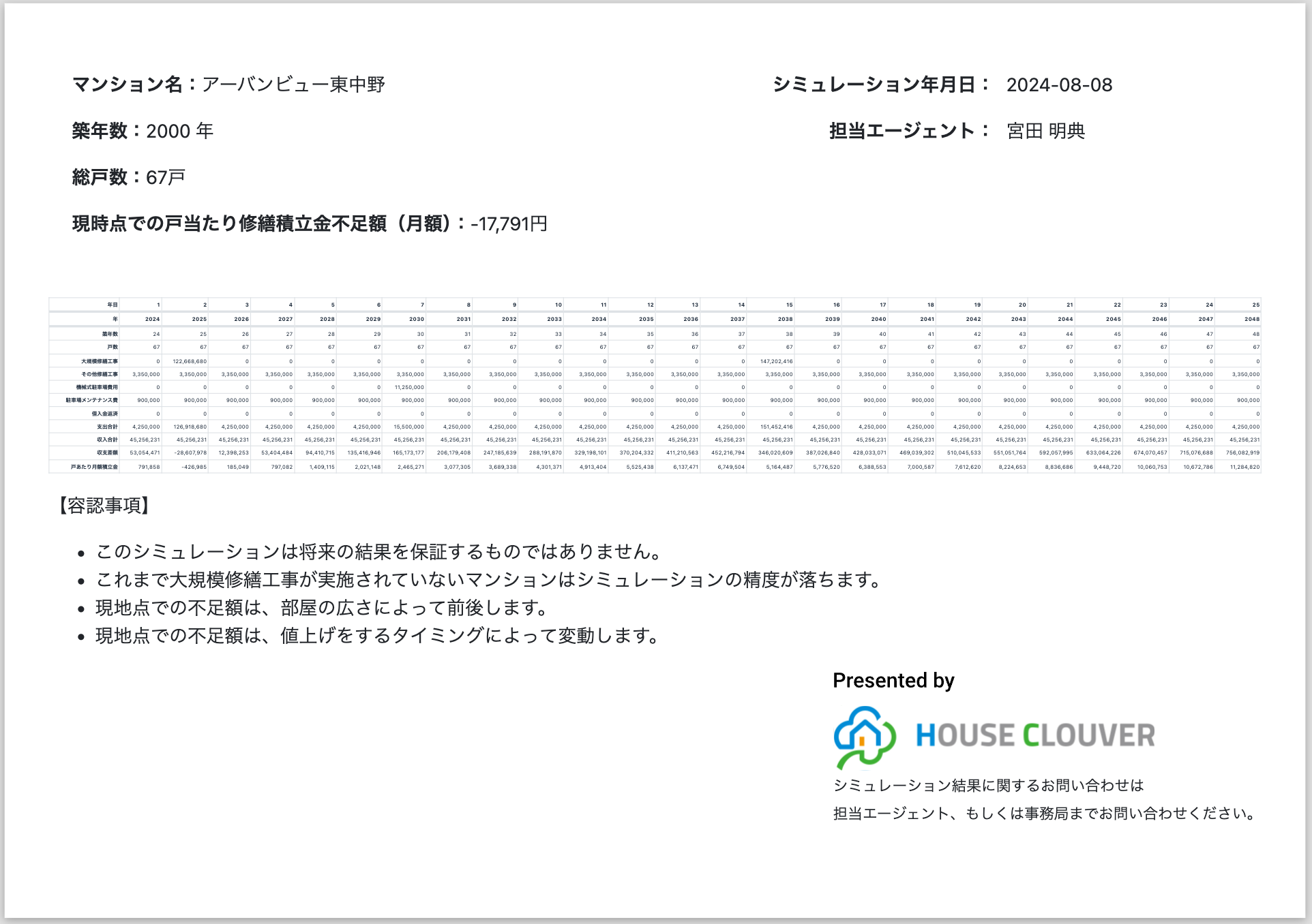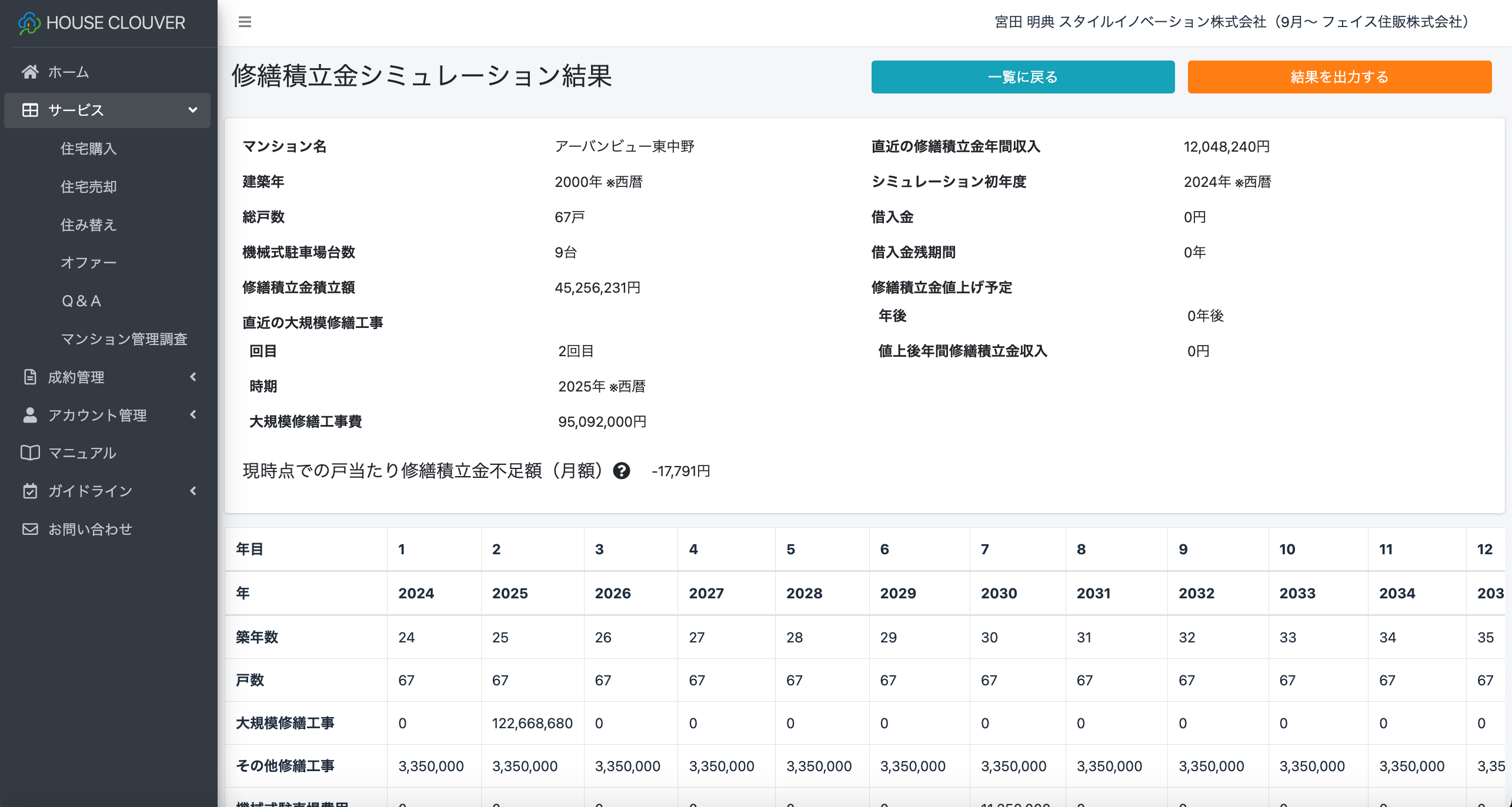 ハウスクローバーには修繕積立金の将来的な過不足が判断できるシミュレーターが備えられています。