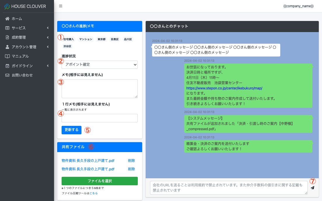 ユーザーの希望サービスや物件種別、エリアなどが表示されます。